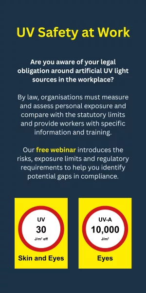 It is essential that organisations are aware of their legal obligations regarding UV light in the workplace. You can join a free UV safety webinar to learn more.