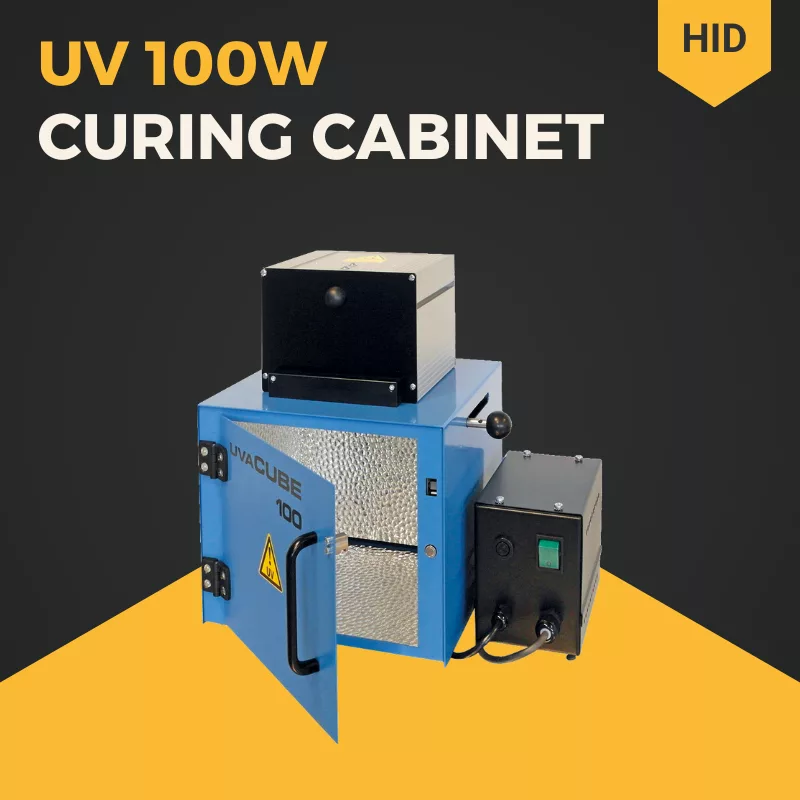 The UV 100W Curing Cabinet has a useful working capacity of 180 x 180 x 180 mm (H x W x D) and is suitable for small component applications. Optimised lamp reflectors and interior provide uniform irradiation (approx. +/- 10 % at base of chamber).
