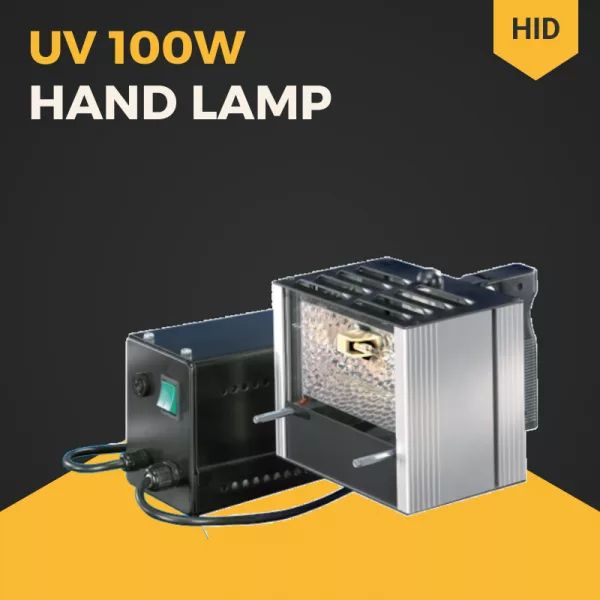 The UV 100W Hand Lamp is designed for mobile applications. It consists of a power supply and a lightweight lamp unit which allows an easy and flexible handling.